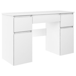 Biurko Megan B1, to doskonała propozycja nie tylko do pokoju ucznia czy studenta, ale również do biur i gabinetów. Wszystkie książki, zeszyty, atlasy czy dokumenty znajdą teraz swoje miejsce. Biurko wyposażone jest w dwie duże szafki i aż trzy szufladki, w których schowasz drobne akcesoria. Duży blat zapewni Ci komfortowe warunki do nauki i pracy, znajdziesz bowiem na nim miejsce na kubek z ulubionym napojem.