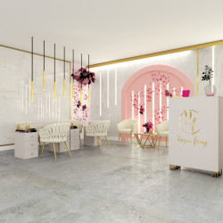 Lada sprawdzi się w nowoczesnych wnętrzach w stylu glamour i art deco. W pełni zabudowana od strony Klientki. Wygodna i wysoka lada przy której Klientka wygodnie zapłaci za usługę. Od strony recepcjonistki otwarte półki, na których można przechowywać niezbędne rzeczy, umieścić terminal płatniczy, kasę fiskalną i trzymać kalendarz.