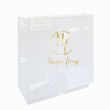 Wnętrze lady od strony recepcjonistki wykonane jest z płyty w kolorze biały mat, a przód, blat i boki wykonane z płyty akrylowej o grubości 18 mm, oklejonej ABS o grubości 10 mm w kolorze biały połysk