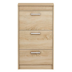 Zestaw mebli do przedpokoju 11W13 składa się z trzech elementów: wysokiej szafki na buty Alaska 13, szafki na buty z siedziskiem Alaska 11 i wieszaka na ubrania. Gotowa aranżacja pozwoli Ci urządzić przedpokój w jednolitym stylu. Praktyczny duży panel wieszaka pomieści na prawdę wiele. Wysoka szafka na buty posiada trzy podwójne przegrody i praktyczny schowek na drobiazgi otwierany od góry szafki. Szafka na buty z wygodnym siedziskiem sprawi, że poczujesz się komfortowo.
