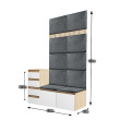 Zestaw mebli do przedpokoju Megan 2P8S to połączenie nowoczesnego wzornictwa z wygodą i komfortem użytkowania. W skład zestawu wchodzi pojemna szafka na buty z siedziskiem Megan 2 o szerokości 100 cm (wygodne otwieranie szafki zapewniają siłowniki gazowe), dwa wieszaki ścienne, osiem tapicerowanych paneli ściennych koloru czarnego oraz komoda. Zarówno panele , jak i siedzisko wykonane są w przyjemnej w dotyku, wysokiej jakości tkaniny. W miarę potrzeb zestaw można rozbudować o dodatkowe szafki, komody i panele.