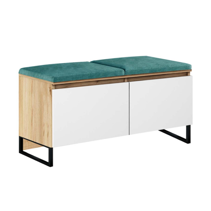 Szafka na buty z siedziskiem MEGAN 2P dąb złoty+biały/morski