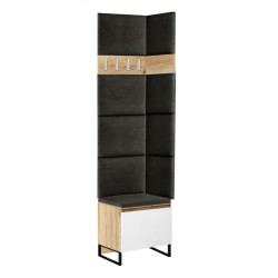Szafka na buty Megan 1P , to nowoczesne wzornictwo i najwyższa jakość wykonania. Siedzisko wykonane jest z wysokiej jakości welurowej tkaniny tapicerskiej, a wygodne otwieranie szafki zapewniają siłowniki gazowe. Szafka posiada metalowe nogi o wysokości 12 cm (malowane proszkowo w kolorze czarnym), wzmocnione w tylnej części czarną płytą meblową. Do szafki można dopasować panele ścienne, wieszaki i komody, tworząc własną aranżację przedpokoju.