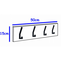 Wieszak Fala o wymiarach 15x50 cm to prosty i minimalistyczny, a zarazem praktyczny i niezbędny element każdego przedpokoju. Użyliśmy do niego czterech nowoczesnych podwójnych haków w kolorze czarnym. Idealnie wkomponujesz go między tapicerowane panele ścienne.