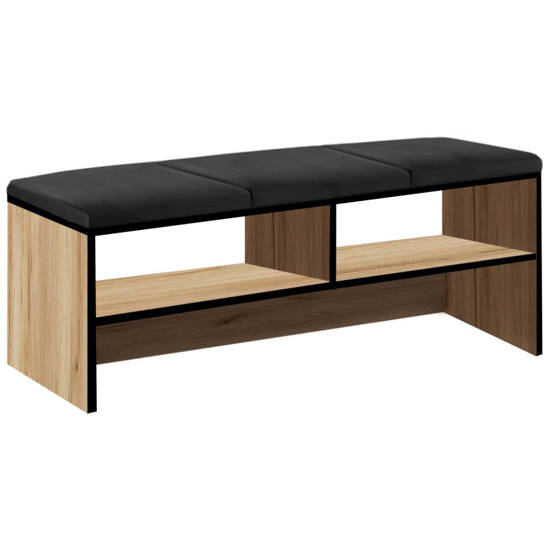 Ławka do przedpokoju z siedziskiem i półkami na buty 109x37cm dąb złoty+czarny