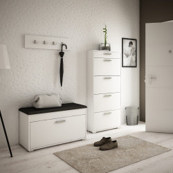 Siedzisko szafki wykonane z wysokiej jakości skóry ekologicznej w kolorze czarnym.