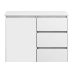 Komoda Megan K2 to połączenie nowoczesnego wzornictwa z precyzją wykonania i wygodą użytkowania. Pojemna komoda o szerokości 90 cm  z trzema szufladami i jedną szafką dzieloną wewnątrz dwoma półkami, zapewni wiele miejsca do przechowywania. Komoda będzie się doskonale prezentować w salonie, pokoju dziecka, biurze czy gabinecie.