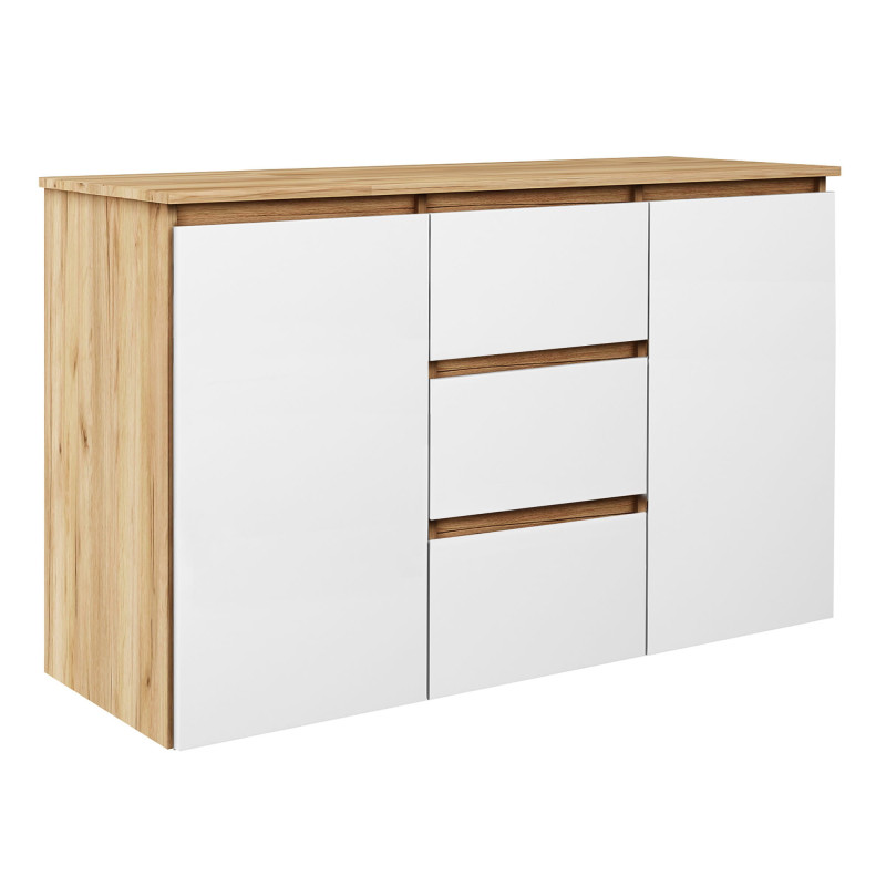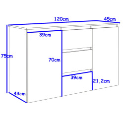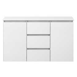 Komoda Megan K3 jest jednym z elementów mebli systemowych Megan, w którym oferujemy również biurka oraz toaletki z oświetleniem led. System charakteryzuje się nowoczesnym wzornictwem bez uchwytów.