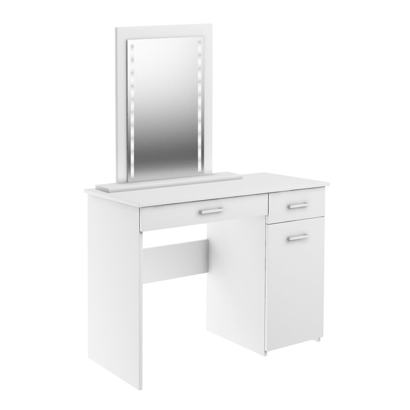 Toaletka z lustrem LED, to idealna propozycja dla każdej kobiety! W komfortowych warunkach zadbasz o swoją urodę, a pojemne półki i szuflady pomieszczą nie tylko wszystkie kosmetyki, ale także perfumy czy biżuterię. Oświetlenie ledowe o neutralnej barwie światła, umożliwi Ci wykonanie perfekcyjnego makijażu. Lustro jest wolnostojące, możesz zatem ustawić je w wybranym przez siebie miejscu (należy przymocować je do blatu w przypadku, gdy toaletka nie stoi bezpośrednio przy ścianie). Ty zdecydujesz, jak zmontować toaletkę! Jest bowiem uniwersalna i możesz zmontować ją na prawą lub lewą stronę. Nie zwlekaj, stwórz swój własny kącik do makijażu i ciesz się komfortem!