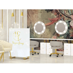 Toaletka Klara 6S z okrągłym białym lustrem to funkcjonalny i niezbędny mebel dla każdej kobiety. Idealne miejsce do wykonania makijażu, ale też kącik w którym zadbasz o swoją fryzurę. 8 żarówek typu LED perfekcyjnie oświetli twarz. Toaletka sprawdzi się w domu jako mebel codziennego użytku dla każdej kobiety, ale również w salonie urody jako miejsce do pracy makijażystki.