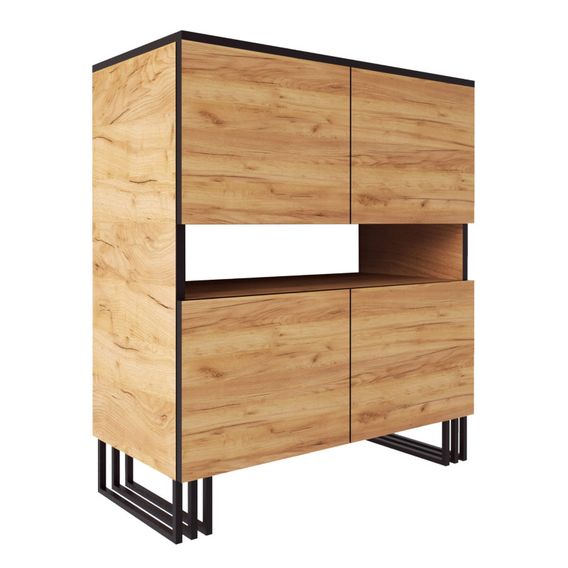 Regał, komoda Klara 90 cm w stylu loftowym na metalowych nogach. Wykonana jest z płyty meblowej w kolorze dąb craft złoty i wykończona czarnym obrzeżem. Komoda z czterema szafkami  zapewni wiele miejsca do przechowywania.  Meble z sytemu Klara to najmodniejszy design i gwarancja najwyższej jakości wykonania.