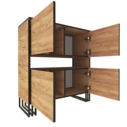 Regał komoda loft KLARA z szafkami 90 cm dąb craft złoty